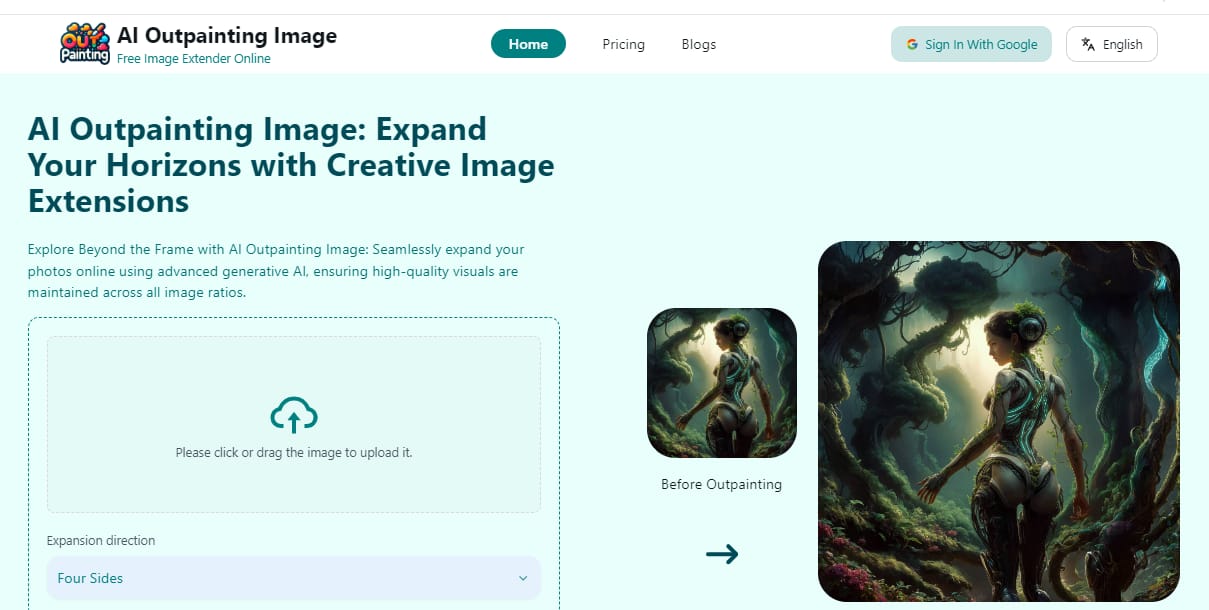 AI Outpainting Image is an advanced tool that seamlessly expands and enhances your images while maintaining original style and quality, perfect for creating high-resolution visuals.