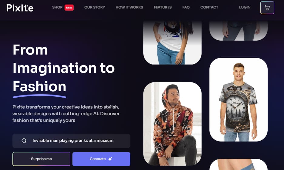 Pixite is a platform that turns your creative ideas into fashionable, wearable designs using advanced AI technology. It offers a unique space to transform imagination into custom clothing.