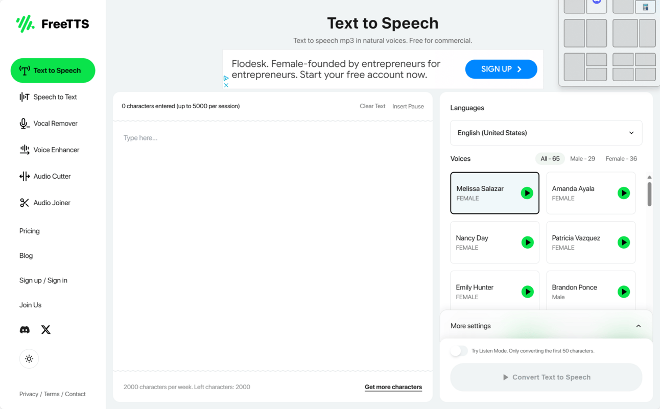 Powerful and simple Text-to-Speech tool to convert text into natural speech and download as mp3.