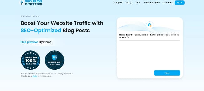 SEO Blog Generator: Boost your website traffic with SEO-optimized blog posts.