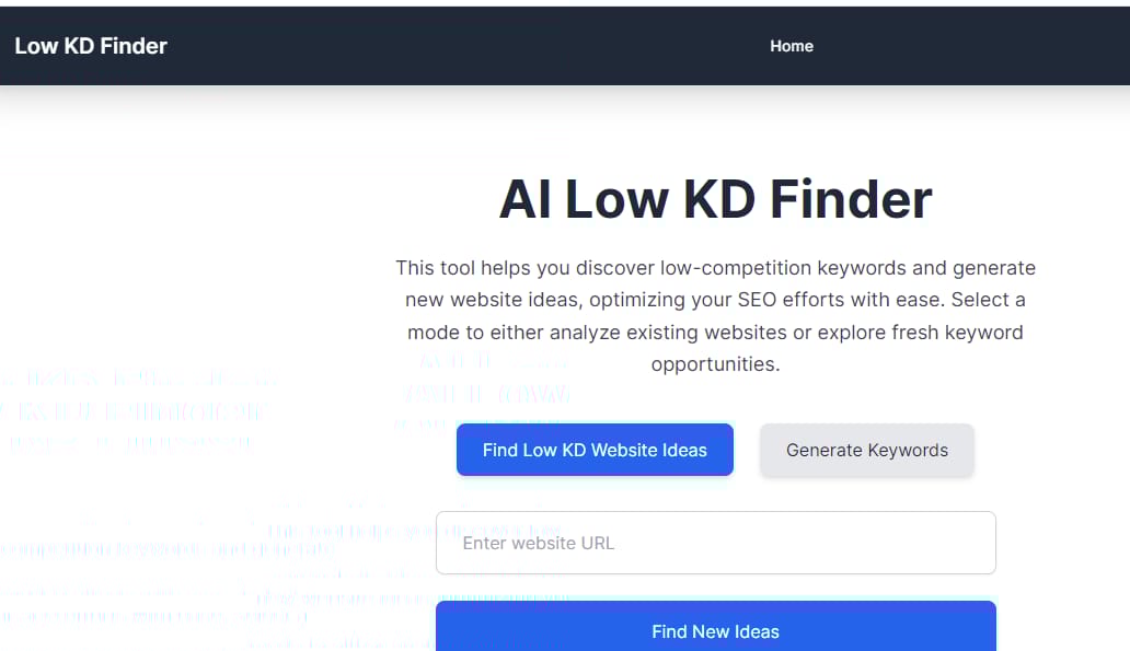 Discover AI Low KD Finder, a powerful tool that uses advanced AI algorithms to identify low competition keywords, enhancing your SEO strategy and improving your web content's visibility.