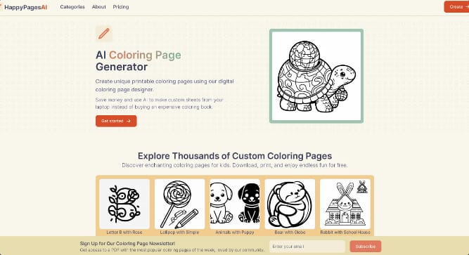 HappyPagesAI: Unique coloring pages created with AI
